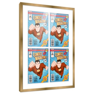PosterPalooza | Comic Book Frame for 4 Golden Age Comics 1938 - 1956 - Bronze on White Comic Frame - 20x25.5