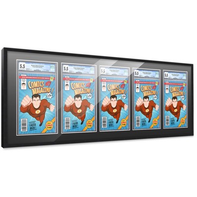 PosterPalooza | Comic Book Frame for 5 Graded Comics - Black Wood with White Mat Comic Frame - 44x15