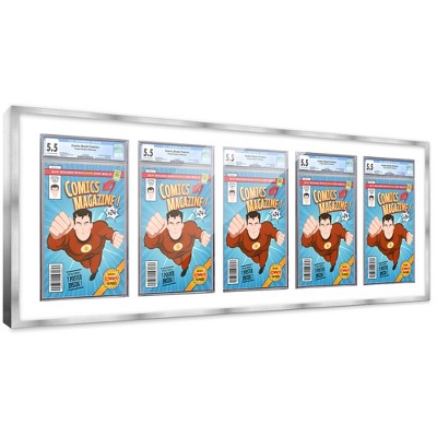 PosterPalooza | Comic Book Frame for 5 Graded Comics - Silver Wood with White Mat Comic Frame - 44x15