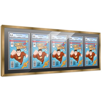 PosterPalooza | Comic Book Frame for 5 Graded Comics - Bronze Wood with White Mat Comic Frame - 44x15