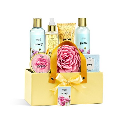 Peony Spa Gift Basket for Women – Mother’s Day Bath & Body Set with Shower Gel, Bubble Bath & Body Mist