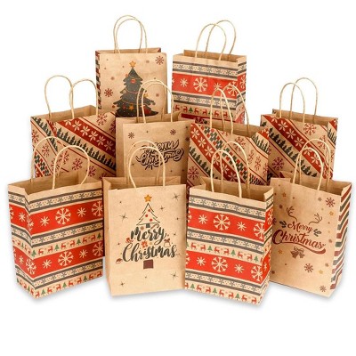 Aoibox Christmas Gift Bags Kraft Paper 24 Pack 12 Styles Small Holiday Bags with Handles for Xmas Party Favors Goody Bags