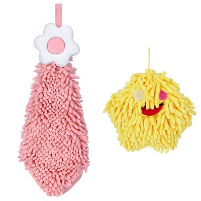 REGALWOVEN 2 Packs Chenille Hand Towel Flower and Cute Cartoon Hanging Hand Towel for Bathroom 6" x 15"/7" x 7"