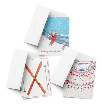 Ski Santa, Ski, Santa Sweater Winter/Holiday/Christmas Greeting Card Pack Sets (3 ct, Assorted) by Ramus & Co