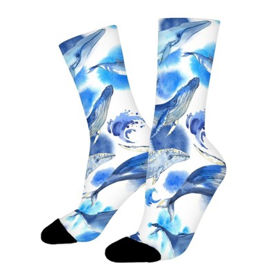 Whale Pattern Women Printed Crew Socks Funny Funky Socks Soft Polyester Novelty Gifts for Artists Men