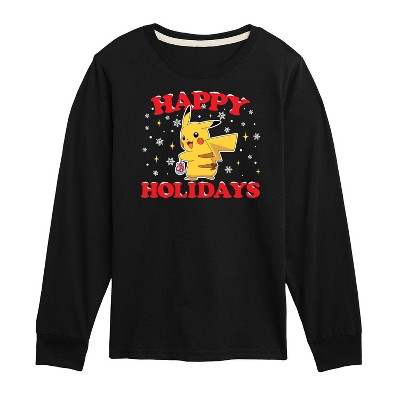 Boys' - Pokémon - Pikachu Happy Holidays Long Sleeve Graphic T-Shirt