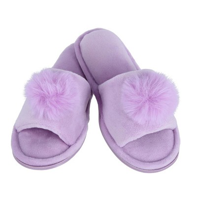 CTM Girl's Soft Pom Open Toe Slide Slippers