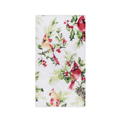 C&F Home Ice Skates Christmas Holly Berries 100% Cotton Waffle Weave Dishtowel
