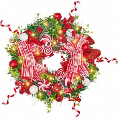 Vickerman Red/White Candy Cane Pom Pom Artificial Christmas Spray. Includes 6 sprays per pack.