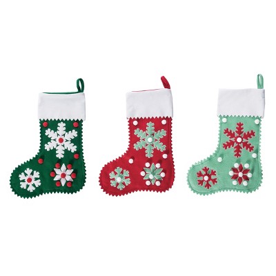 Transpac Felt Cottage Snowflake Stocking Set of 3 Christmas Home Decorations Holiday Stockings for Festive Cheer