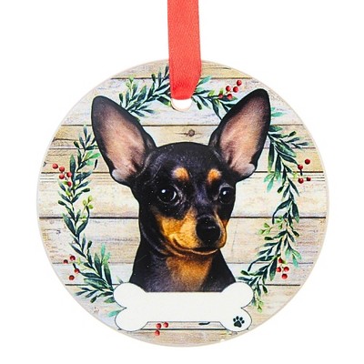 E & S Imports 3.5 Inch Ceramic Black And White Chihuahua Ornament Christmas Tree Ornament , Dog Puppy Ribbon Cherish Pet (1PC)