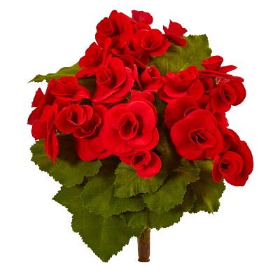 Nearly Natural 11-in Begonia Bush Artificial Flower (Set of 4), Red