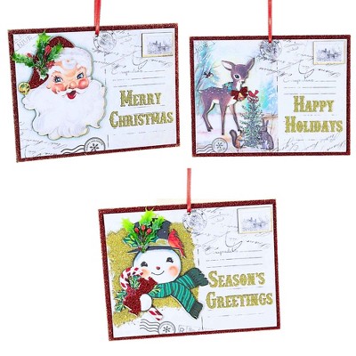 Roman 4.75 In Postcard Ornaments Christmas Tree Ornament Set , Reindeer Snowman Santa Claus (3PC)