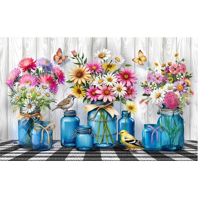 Briarwood Lane Spring Doormat 30x18 Indoor Outdoor Blue Jar Bouquets For Spring Doormat
