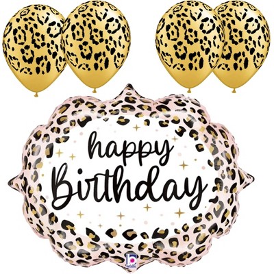 LoonBalloon Leopard Print Birthday Balloon with 4 Leopard Latex Balloons - Wild & Festive
