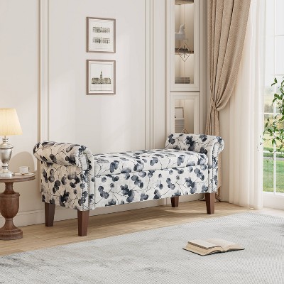 Handy Living Wallen Traditional Rolled Arm Storage Bench with Nailheads Floral Bonsai