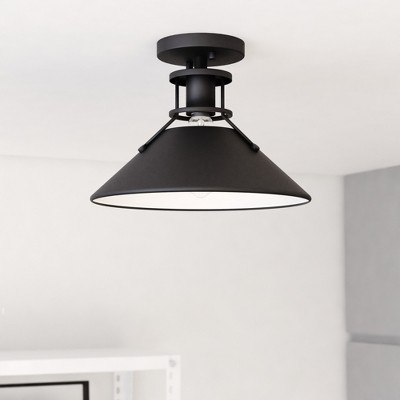 DORESshop 12.6 in. 3-Light Industrial Matte Black Flush Mount Ceiling Light with Metal Shade No Bulbs Included