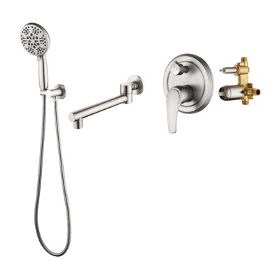 Cobbe with 7 Settings Handheld Shower Tub Spout and 59-Inch Hose Tub Shower Faucet Set Single Handle Wall Mounted Shower System Brushed Nickel