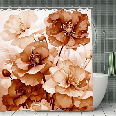 Brown Shower Curtain Rose Floral Shower Curtain Set Abstract Burnt Orange Flowers Bathtub Decor Waterproof Fabric Curtains 70.8x70.8 Iniches