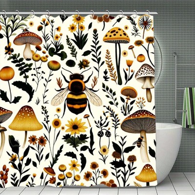 Retro Boho Mushroom Shower Curtain, Vintage Bohemian Witchy Dark Floral Botanical Bath Shower Curtain Set 70.8x70.8 Iniches