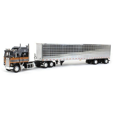 First Gear 1/64 Silver & Black Kenworth K100 Aerodyne Long Frame w/ Chrome Van Trailer, DCP by First Gear, 60-1559