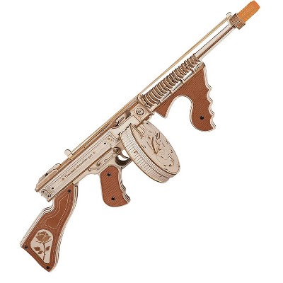 Etokfoks 275pcs 3D Wooden Submachine Shooter Puzzle Kit Rubber Band Launcher Model Assembly Gift for Adults Men Women with Targets
