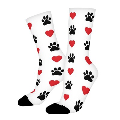 Cat Dog Paw Heart Women Printed Crew Socks Funny Funky Socks Soft Polyester Novelty Gifts for Artists Men