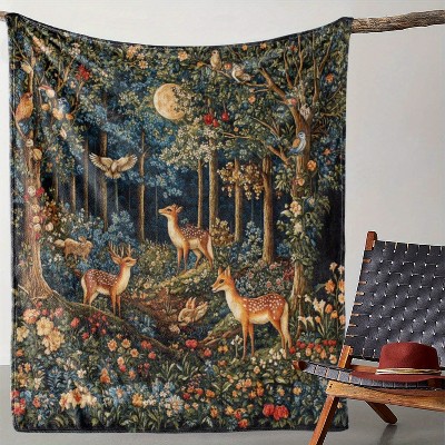 Lomsoe Vintage Romantic Forest Animal Print Flannel Blanket - All Seasons Soft and Warm Throw Blanket for Napping, Camping, Travel, Office, Home Decor