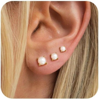Pearl Earrings for Women - 14k Gold Plated Cute Bow Design, Hypoallergenic Pearl Studs, Wedding Jewelry Gifts