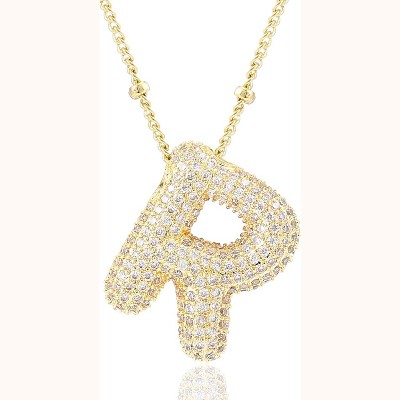 Personalized Chunky Initial Necklace: 14K Gold Plated Bubble Balloon Charm Pendant for Women