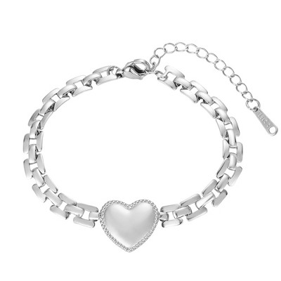 Adornia Tarnish Resistant Silver Heart Grid Chain Bracelet