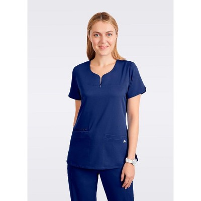Moxie Scrubs Ashley Top – Soft Split Neck Women's Scrub Top with 4-Way Stretch, Quick Dry Fabric, Zipper Pocket, Plus Sizes XXS–5X