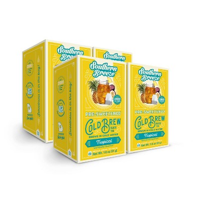 Southern Breeze Cold Brew Sweet Tea Tropical Iced Tea with 20 Individually Wrapped Tea Bags, Pack of 4