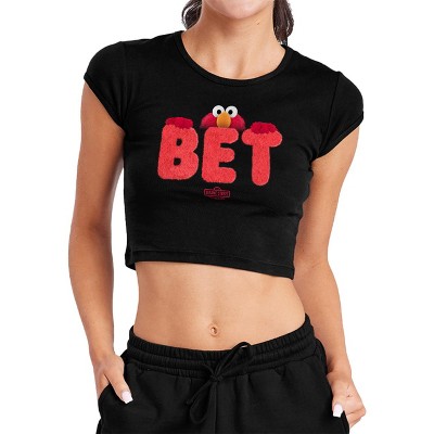 Women's Sesame Street Elmo Fur Bet Cap Sleeve Baby Rib Crop Top