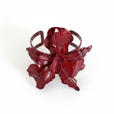 Alilang Women's Statement Floral Open Cuff Bracelet with Sculpted Petal Design and Glossy Finish - Red