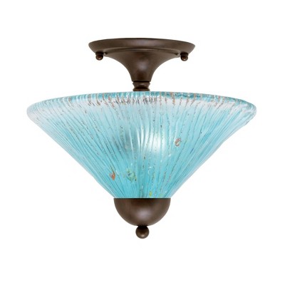 Toltec Lighting Any 2 - Light Flush Mount in Bronze with 12" Teal Crystal Shade