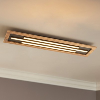 Rennnsan Cravelle 31"W Rectangle Wooden Farmhouse LED Dimmable Flush Mount in Black