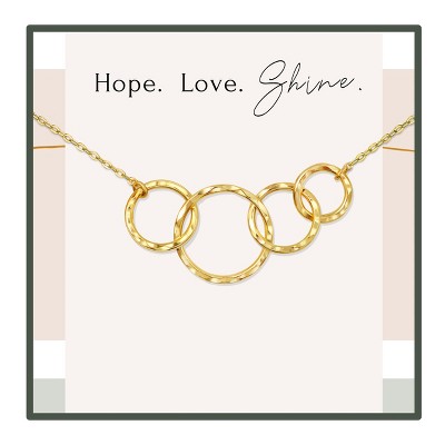 HOPE LOVE SHINE Four 4 Ring Interlocking Circles Necklace - Minimalist Jewelry in 14K Gold over Sterling Silver