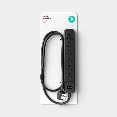 Surge Protector 6-Outlet with 4ft Extension Cord 720J Black - Dealworthy™