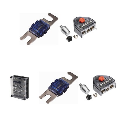 Kicker Warhorse (2) Battery Terminals & HPFD4 Fused Way Distribution Block w/ AFS 80 / 100 Amp Fuse Bundle
