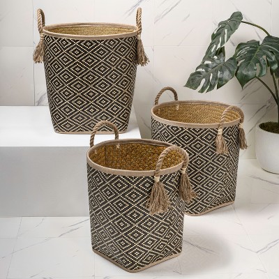 Northlight Set of 3 Twisted Weave and Zig Zag Sewn Seagrass Storage Baskets 16.5"