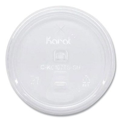 Karat PET Lids, Flat with Straw Slot, Fits 12 oz to 24 oz Cold Cups, Plastic, Clear, 1,000/Carton