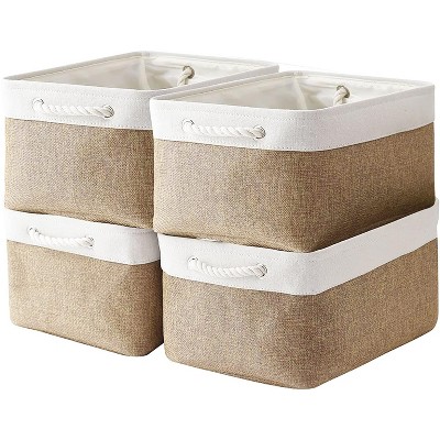 Aoibox Multipurpose Storage Bins with Lids Foldable Closet Organizers Removable Dustproof Decorative Boxes Brown White Large 3 Pack