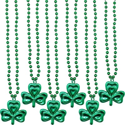 4E's Novelty 12 Pcs St Patrick's Day Beads Necklace Bulk Green Shamrock Beads for Irish Party Favors & Supplies, Costume Accessories