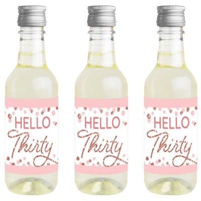 Big Dot of Happiness 30th Pink Rose Gold Birthday Mini Wine & Champagne Bottle Label Stickers Happy Birthday Party Favor Gift for Women and Men 16 Ct