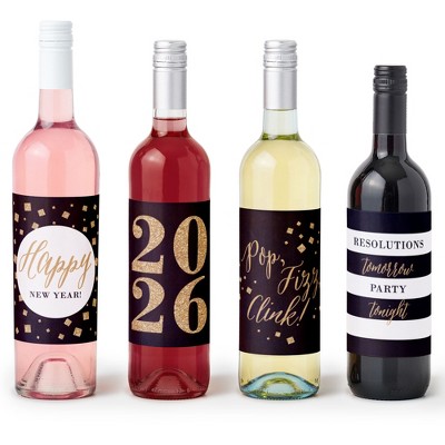 Big Dot of Happiness New Year's Eve - Gold - 2026 New Years Eve Party Decorations for Women and Men - Wine Bottle Label Stickers - Set of 4