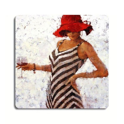 Red Hat Woman Drinking Vintage Tin Sign Cute Wall Decor Retro Metal Wall Art for Home Office 8x8 Inches