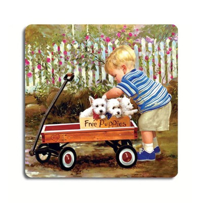 Boy With Three Puppies Vintage Tin Sign Cute Wall Decor Retro Metal Wall Art for Home Office 8x8 Inches