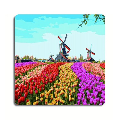 Tulips And Windmill Vintage Tin Sign Cute Wall Decor Retro Metal Wall Art for Home Office 8x8 Inches