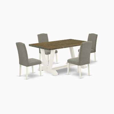 HomeStock 5-Piece Linen White Finish Solid Wood Top Dining Table with 4-Parson Chair